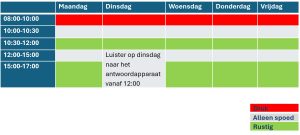 Per afspraak/consult kunt u 1 probleem bespreken.
